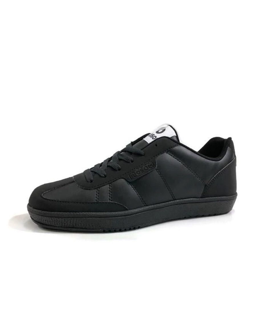 Sepatu ini menggunakan upper berbahan synthetic leather (PU) yang kuat, tahan lama, dan mudah dibersihkan, dipadukan dengan lining kain/mesh untuk kenyamanan. Outsole terbuat dari rubber/TPR yang ringan, fleksibel, dan memiliki daya cengkeram baik sehingga aman dipakai sehari-hari.